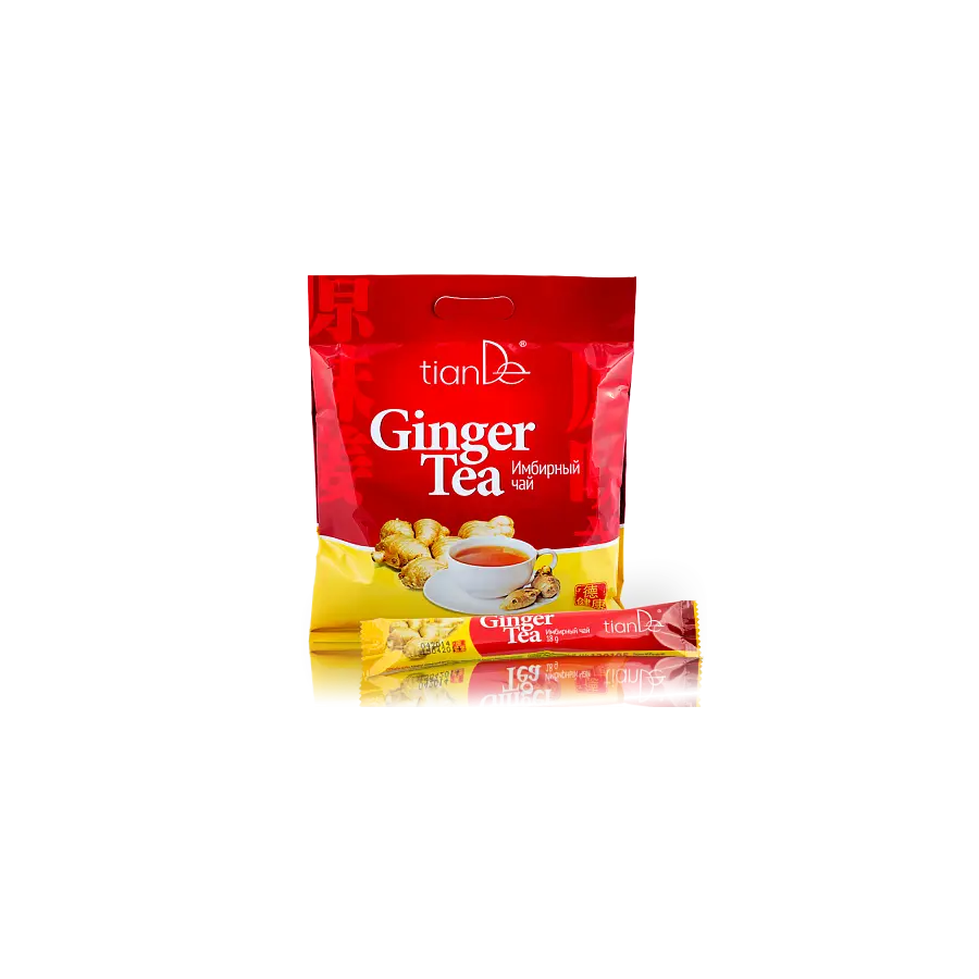 Ceai de ghimbir cu trestie de zahăr brun. Activează procesele organelor interne și metabolismul în organism, îmbunătățește digestia, elimina toxinele.Conține extract de ghimbir, zahar brun din trestie. Include mai mult de 300 de substanțe biologic active, este o sursă de vitamine A, B1, B2, B3, B4, B5, B6, B9, C, E, și K.