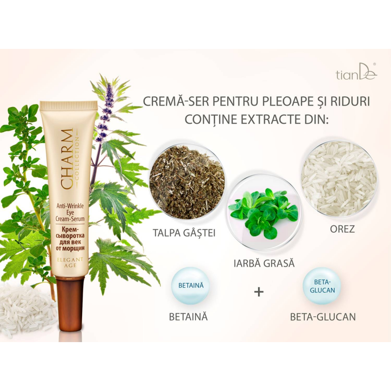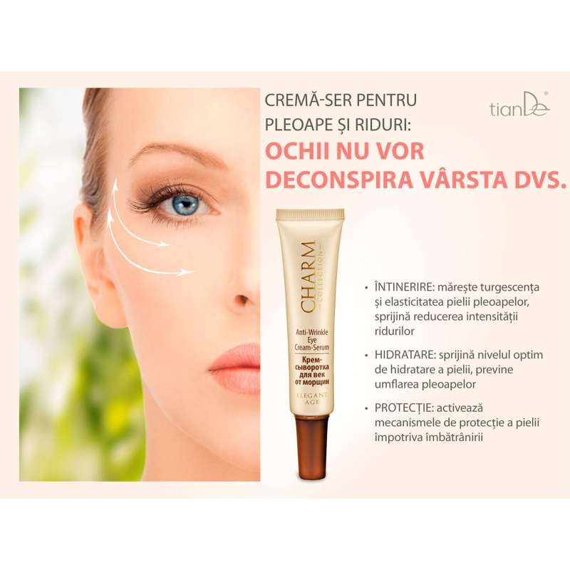 Crema-ser antirid pentru ochi Charm contine o concentratie mare de componente active compatibile cu pielea,